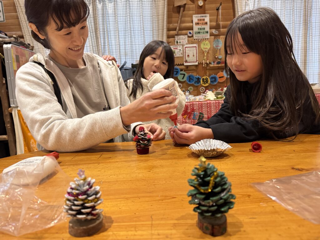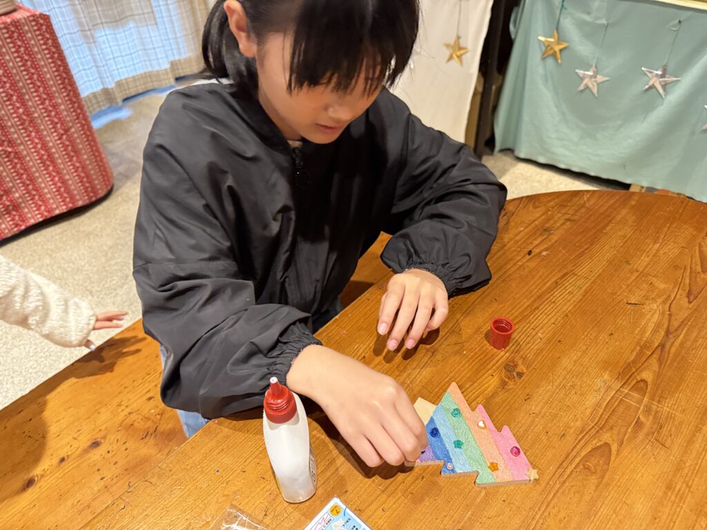 校長先生が宿直で、そんな前日泊のちびっ子らが、クリスマス準備をしました(笑)。