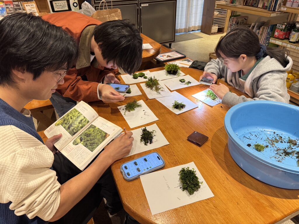 また、午後からは、三重大のヤドリギプロジェクトのメンバーがコケ探検隊の準備のため下見にきてくれましたね。