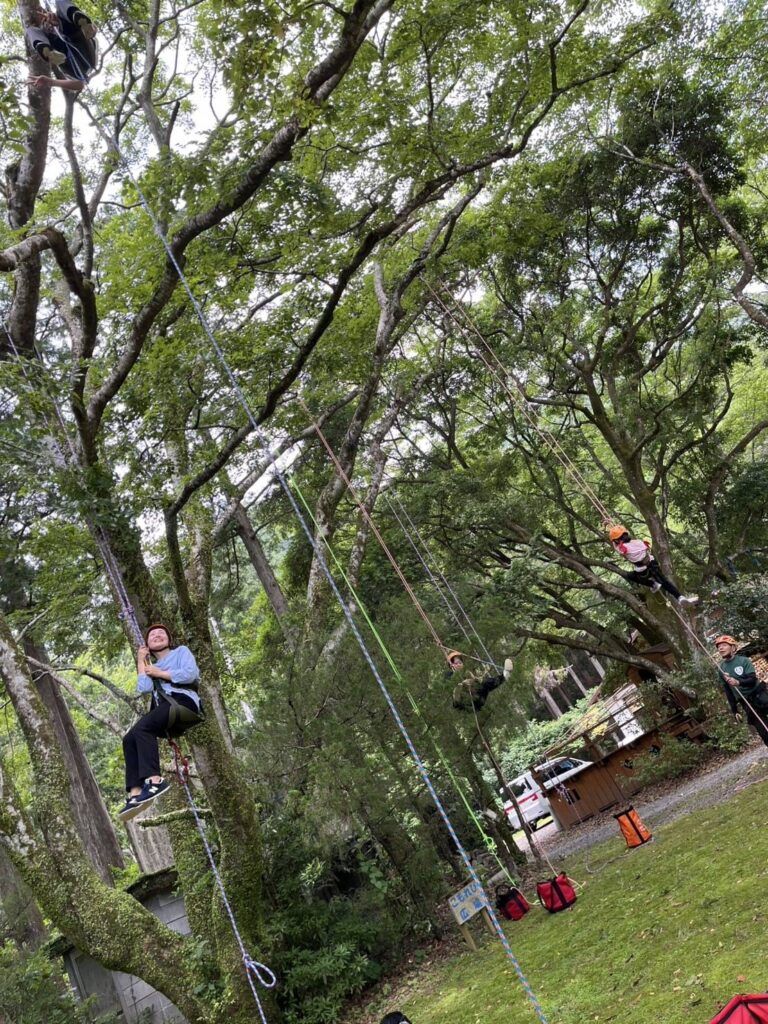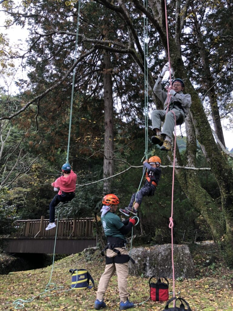 内容:専用の道具【ツリーハーネス】と【ロープ】を使いながら、木の上まで登っていくレクリエーションです。