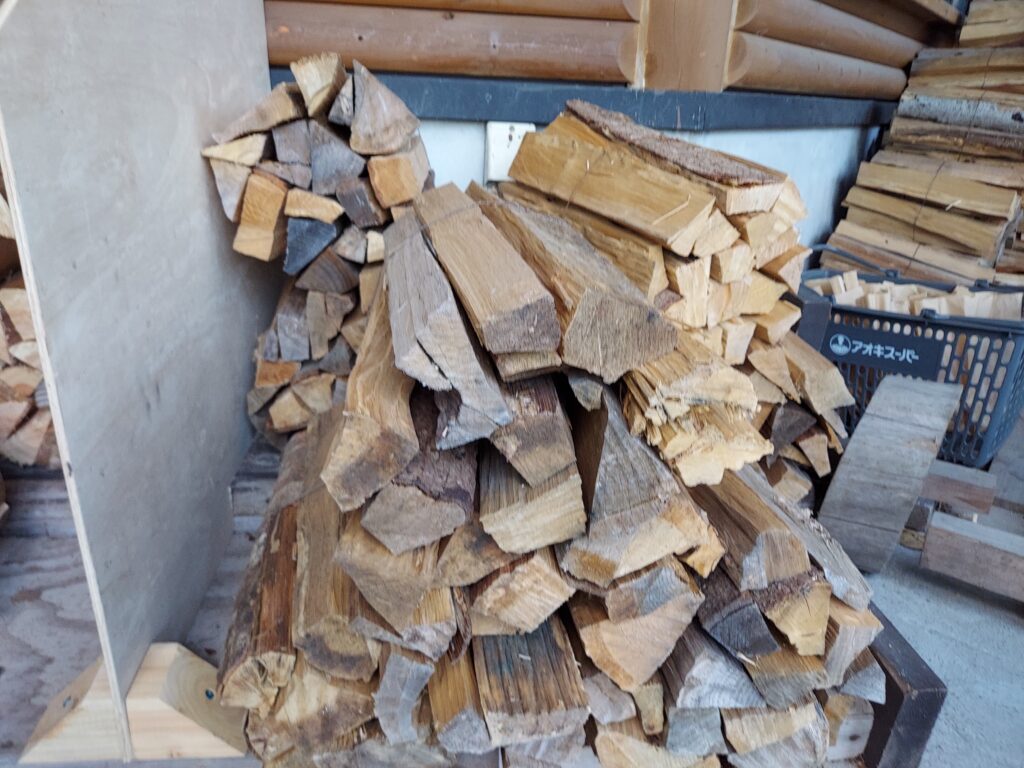 キャンプinn海山では、理事長さんのこだわりが詰まったショート薪をはじめ…
