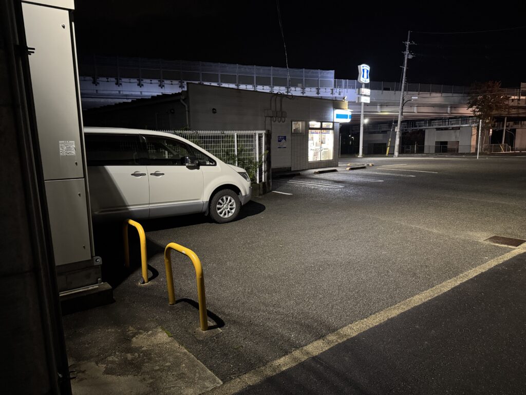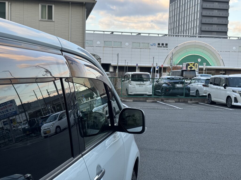 今回の歩く旅の出発点の海南駅前の駐車場。