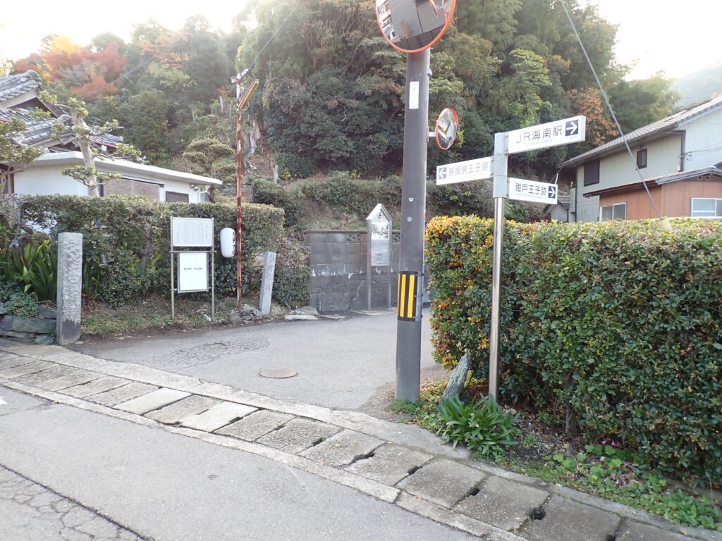 前回よりの分岐点だ。藤代峠より下りてきて熊野一の鳥居跡と言う分岐点の場所だ。前回は和歌山城に向かうため海側に進路を取ったが今回は山側だ。