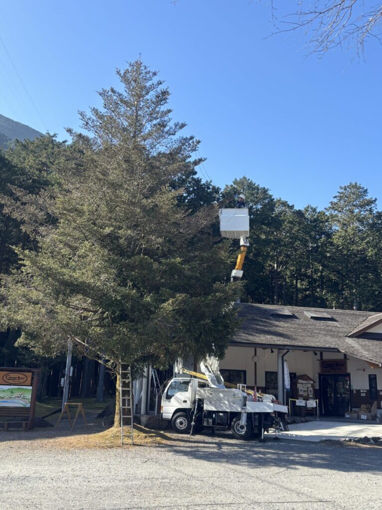 期間限定で飾り付けてたイルミネーションツリーの片づけ作業をおこないました。
