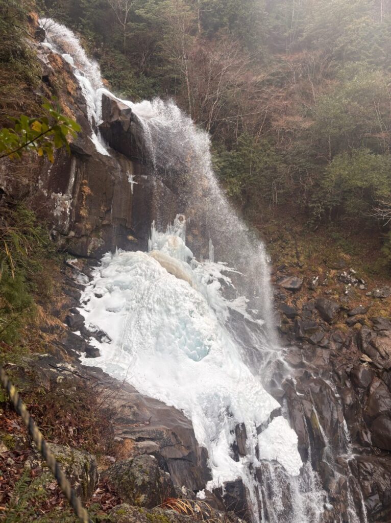 こちらも滝全体は凍ってなかったですが、周りはバキバキに凍ってました。