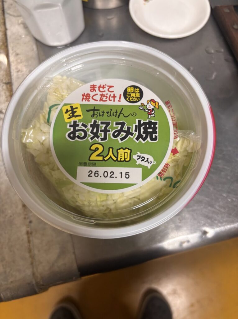 用意するものは地元のスーパーに置いてあるお好み焼きセット(400円ぐらい)と卵だけ。