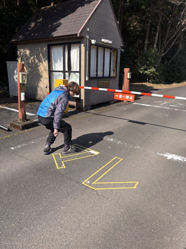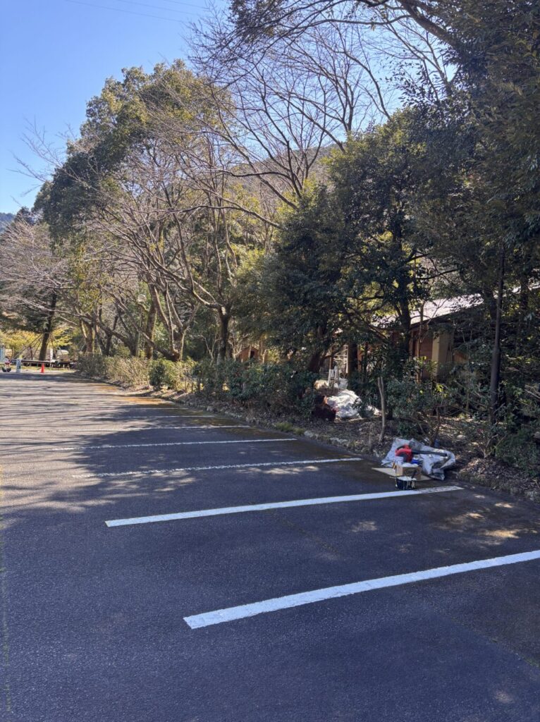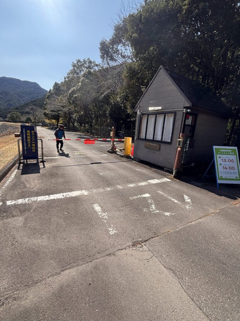 キャンプ所の入り口。トマレの文字や停止線が消えかかってます(´・ω・)