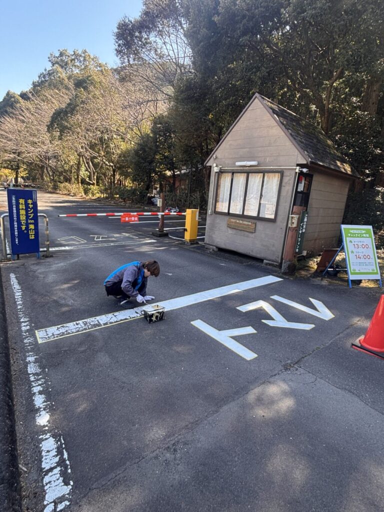 マスキングが終われば、アスファルト用の塗料をローラーで塗っていきます。
