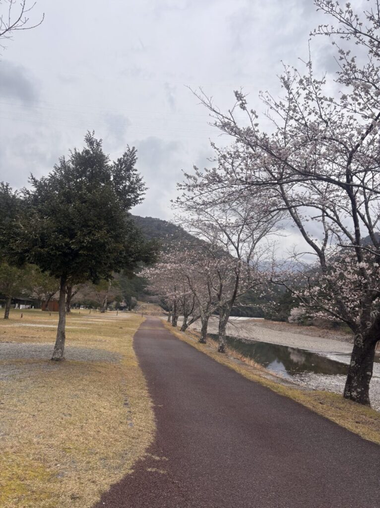 リバーサイト前のサクラ。曇ってて少しわかりずらいですが、大分咲いてきました。